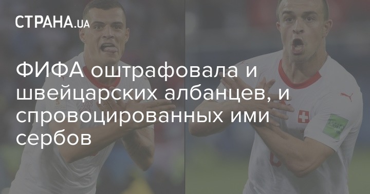 "Швейцарские игроки Гранит Джака, Джердан Шакири и Штефан Лихтштайнер оштрафованы на 10 000 швейцарских франков, 10 000 швейцарских франков и 5 000 швейцарских франков соответственно, а также получили предупреждения", - говорится в сообщении пресс-службы ФИФА в понедельник.