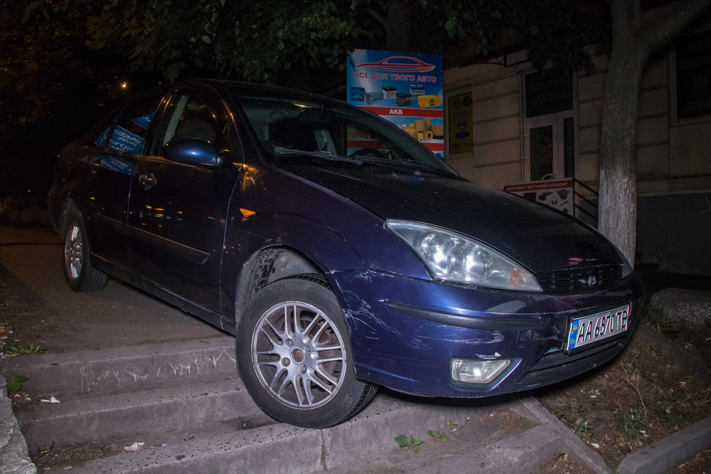 Сегодня, 29 июня, в Соломенском районе Киева водитель на Ford, выезжая со двора, зацепил две припаркованные машины и пытался скрыться, но повис на ступеньках тротуара.