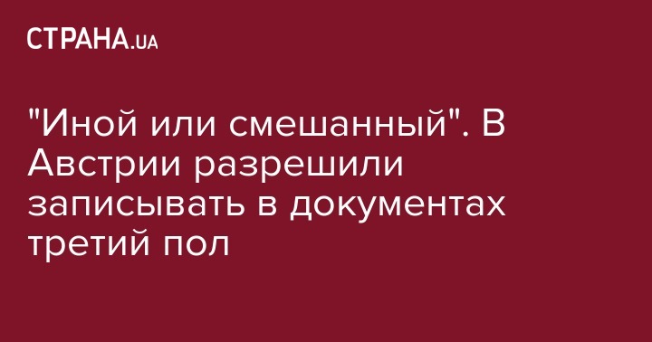 Конституционный суд Австрии дал согласие на внесение в книги записи актов гражданского состояния (ЗАГС) т.н. "третьего пола". Суд рекомендовал к использованию для таких людей определения "иной", "смешанный", "неопределенный".