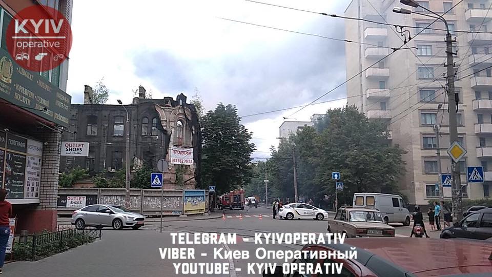 В сети появились фото с места пожара, который вспыхнул сегодня, 3 июля, в Подольском районе Киева. В историческом центре столицы загорелось заброшенное, полуразрушенное трехэтажное здание, которое известно, как дом купца Вертипороха.