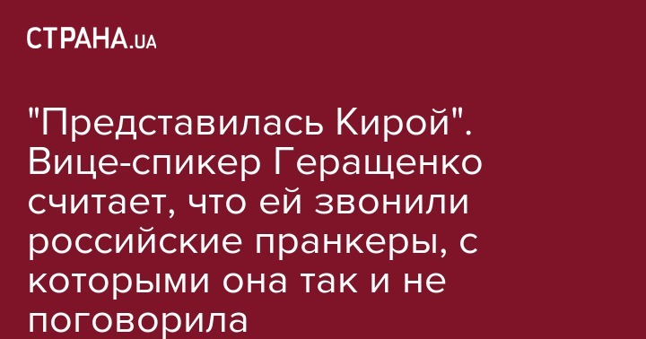 "Представилась Кирой". Вице-спикер Геращенко считает, что ей звонили российские пранкеры, с которыми она так и не поговорила