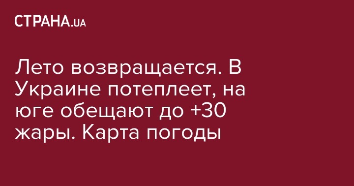 Лето возвращается. В Украине потеплеет, на юге обещают до +30 жары. Карта погоды
