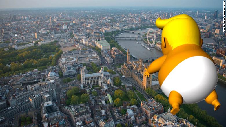 Президента США Дональда Трампа во время его официального визита в Лондон ждет сюрприз. Активисты планируют поднять в небо над центром британской столицы воздушный шар с изображением американского лидера в подгузниках.