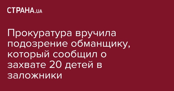"24-летнему жителю Коломыйского района Ивано-Франковской области, который прислал ложное сообщение о 20 детях-заложниках и требовал за их освобождение $350 тыс., объявлено подозрение", – сказано в сообщении.