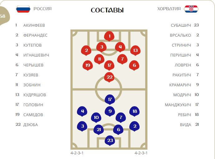 20.10  Хорватский тренер  Златко Далич повторил состав, с которым вышел на поединок с Нигерией - первую игру Хорватии на ЧМ. Состав явно атакующий.