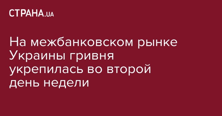 На межбанковском рынке Украины гривня укрепилась во второй день недели