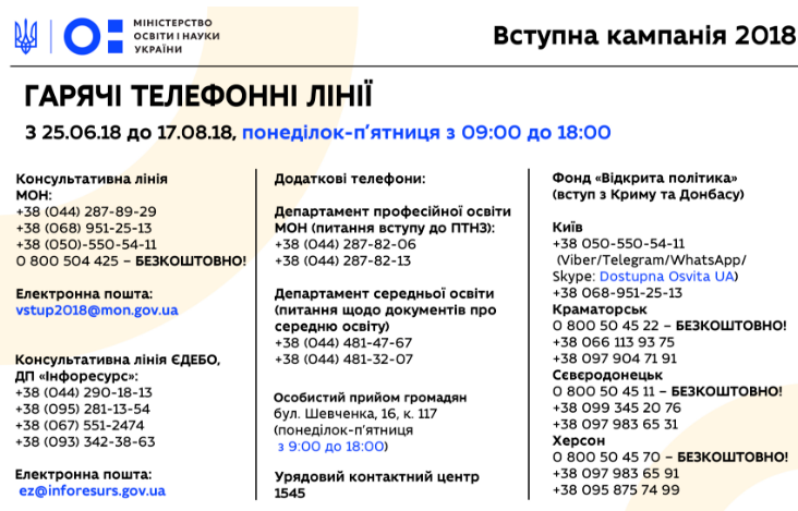 Кстати, несмотря на слова абитуриентов о единственном номере, МОН обнародовало несколько номеров для консультаций и справок: