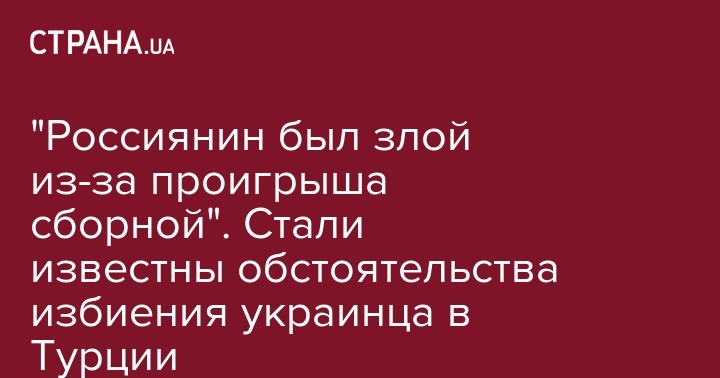 Жестоко избитый в Турции житель Запорожья Андрей Сова все еще подключен к аппаратам в больнице и в сознание не приходил. По словам его жены, он пострадал из-за россиянина, разозленного проигрышем сборной. Об этом сообщает Обозреватель.
