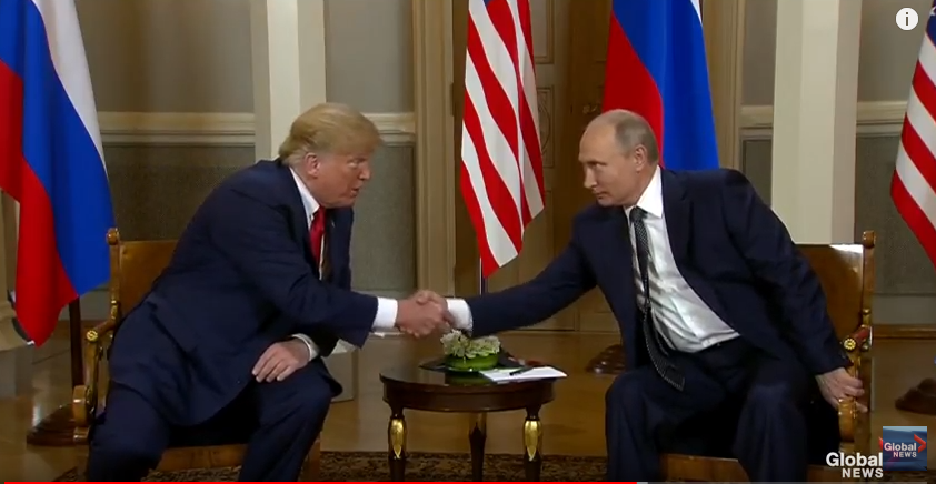 Появилось видео первой встречи Трампа с Путиным на саммите в Хельсинки
