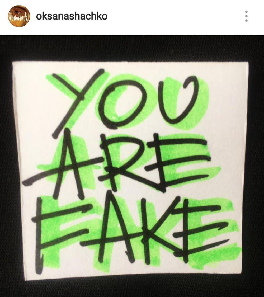 "Вы все - фейк", - написала на английском языке в записке 31-летняя Оксана Шачко.