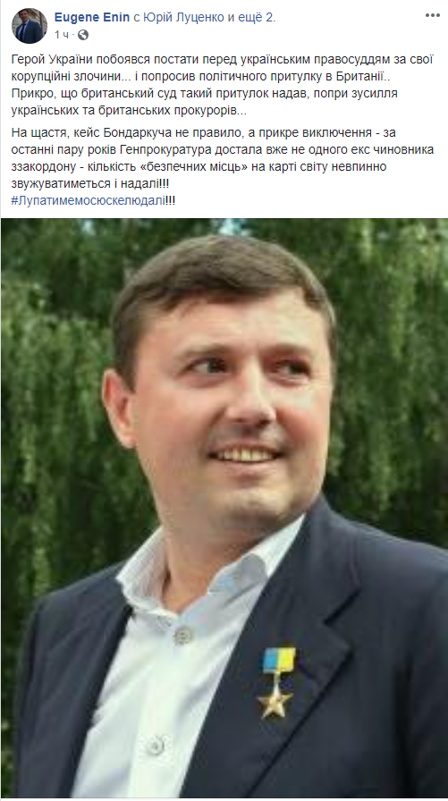 "Герой Украины побоялся предстать перед украинским правосудием за свои коррупционные преступления ... и попросил политического убежища в Великобритании ..