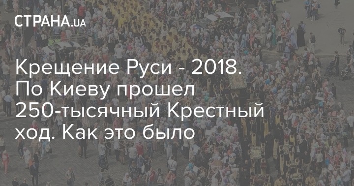 15:47  Более 250 000 верующих со всей Украины приняли участие в Молебне на Владимирской горке и Всеукраинском крестном ходе в Киеве. Это в 2,5 раза больше, чем в 2017 году. Такие данные сообщила Украинская православная церковь
