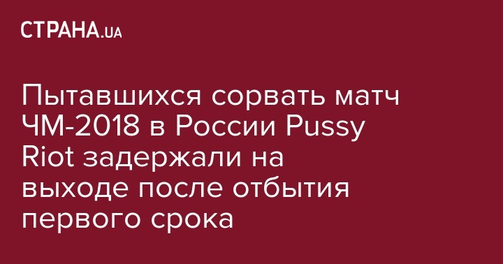 Участниц группы Pussy Riot вместе с издателем "Медиазоны" Петром Верзиловым задержали на выходе из российского спецприемника, где они отбывали арест за попытку сорвать матч ЧМ-2018 акцией "Милиционер вступает в игру".