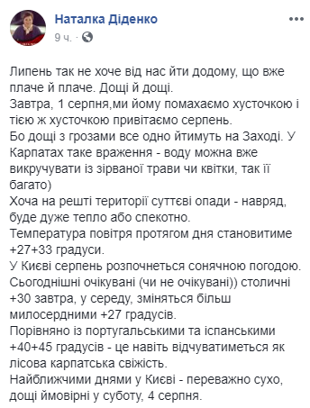 Мы писали, что синоптики рассказали, какой будет погода в августе в Киеве.