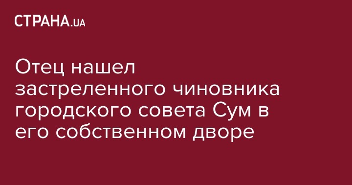 Вечером в четверг, 2 августа, в Сумах убили чиновника местной мэрии. Сообщается, что Анатолия Жука нашли во дворе собственного дома на улице Толстого с двумя пулевыми ранениями, в голову и спину, оказавшимися смертельными, передают  UA:Сумы.