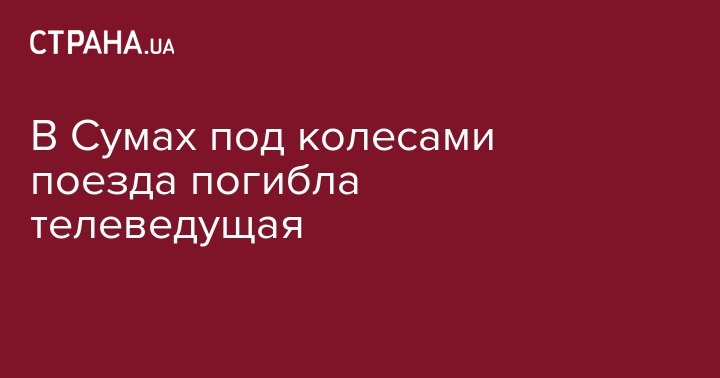 В пятницу, 3 августа, в Сумах под поездом погибла телеведущая телекомпании "Академ TV" Юлия Тютченко. Трагедия произошла около 18:30 на участке ж\д пути "Сумы - Сумы-Товарная" в районе Голубых озер и улицы Героев Крут.
