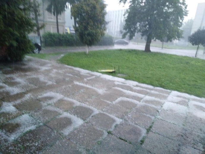 Вчера вечером, 5 августа, на Львовскую область обрушились сильные дожди с градом. Градины были очень крупные, размером с вишню. Они плотным слоем усеяли улицы, и на время превратили лето в зиму.