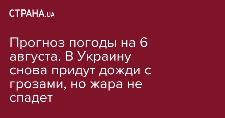 В понедельник, 6 августа, синоптики обещают дожди с грозами по всей территории Украины. Об этом сообщается на сайте Украинского гидрометеоцентра.