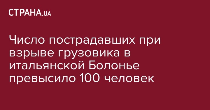 В итальянской Болонье число пострадавших в результате взрыва грузового автомобиля, который перевозил горючие материалы, превысило 100 человек. По данным телеканала RaiNews24, 55 человек с ожогами различной степени тяжести были доставлены в больницу Маджоре в Болонье. Еще 18 пострадавших отправлены в больницы в Будрио, Кастель-Сан-Джованни и Бентивольо.
