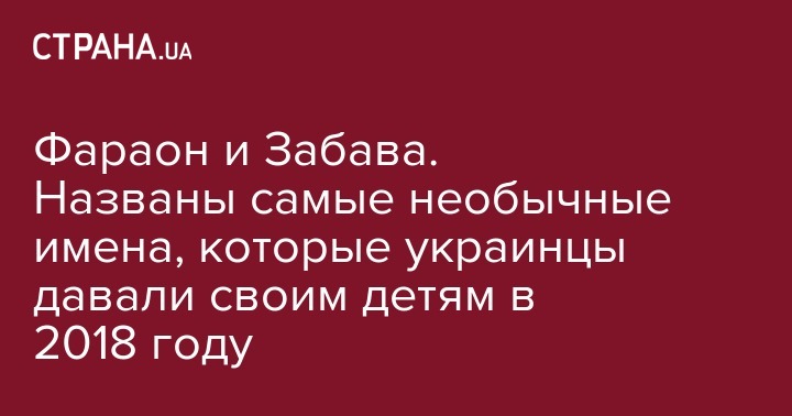 В Министерстве юстици рассказали о необычных именах, которые украинцы выбирают для своих детей. В частности, в первой половине 2018 года были зарегистрированы такие имена, как Игорина, Милаша, Шамама, Гамлет и Фараон. Об этом сообщила заместитель министра юстиции по вопросам государственной регистрации Елена Сукманова, сообщает пресс-служба ведомства.