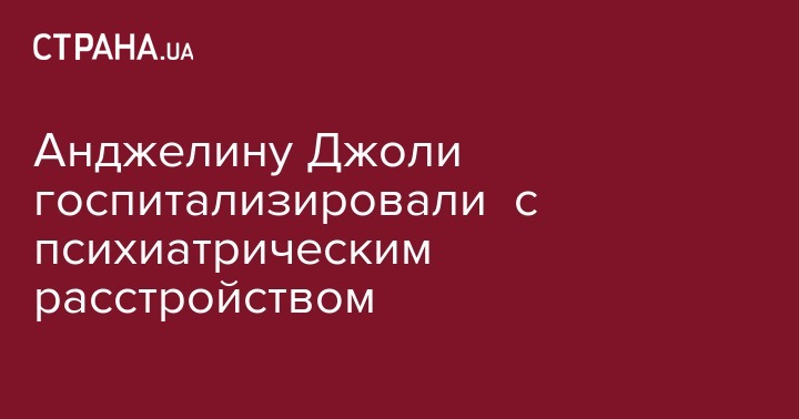В результате развода Анджелина Джоли госпитализирована с психиатрическим расстройством в специализированную клинику. Об этом сообщает The Hollywood Life.