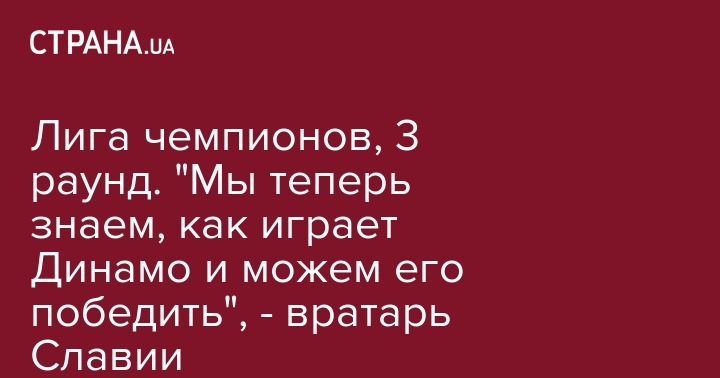 Лига чемпионов, 3 раунд. "Мы теперь знаем, как играет Динамо и можем его победить", - вратарь Славии