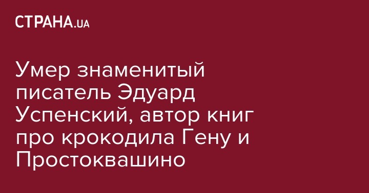 В Москве умер писатель Эдуард Успенский, сообщает российский "Интерфакс" со ссылкой на источник. Также об этом сообщает Телеграм-канал Mash.
