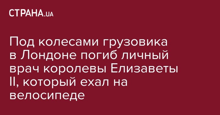 В центре Лондона в ДТП погиб личный врач королевы Великобритании Елизаветы II 67-летний Питер Фишер, который ехал на велосипеде.