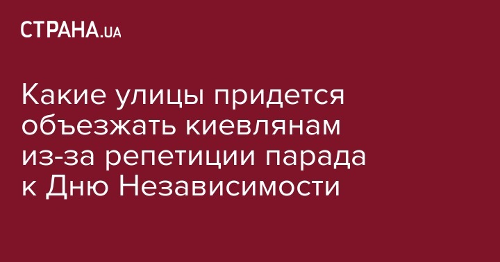 18 августа вечером в Киеве будет проходить репетиция парада ко Дню Независимости. Часть улиц города будет перекрыта. Об этом сообщает пресс-служба Киевской городской государственной администрации.
