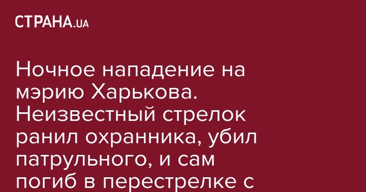 Ночное нападение на мэрию Харькова. Неизвестный стрелок ранил охранника, убил патрульного, и сам погиб в перестрелке с полицией. Фото и видео