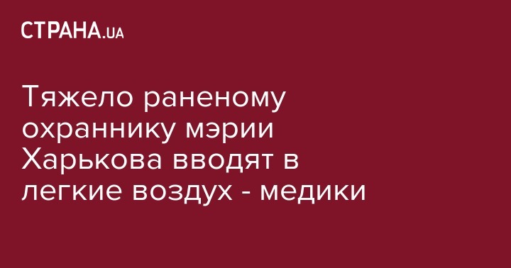 Тяжело раненый во время стрельбы под мэрией Харькова охранник горсовета Геннадий М., находится на искусственной вентиляции легких.  Об этом сообщает заместитель главврача больницы скорой и неотложной помощи Андрея Козаченко, пишет NewsRoom.