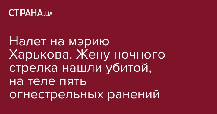 Налет на мэрию Харькова. Жену ночного стрелка нашли убитой, на теле пять огнестрельных ранений