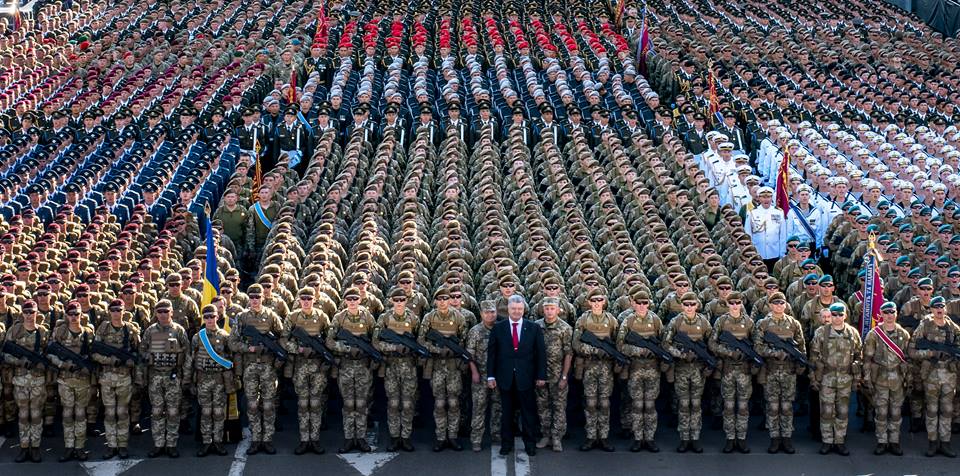 Фото президента Петра Порошенко, снятое на репетиции парада на Крещатике в окружении войск,  вызвало  у пользователей различные реакции от критики до восторга.