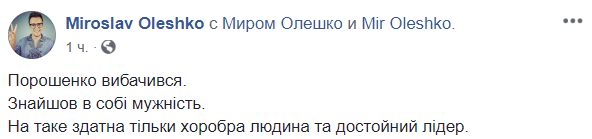 "Порошенко извинился. Нашел в себе мужество. На такое способен только храбрый человек и достойный лидер".