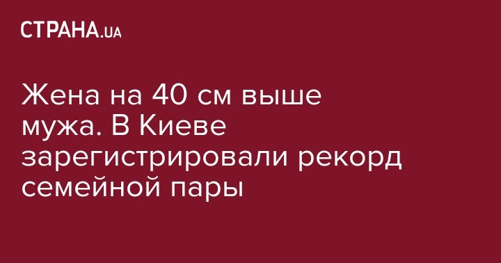 Национальный Реестр Рекордов зарегистрировал семейную пару киевлян с наибольшей разницей в росте - 39,6 см. Об этом на своей странице в сети сообщила руководитель Национального реестра рекордов Лана Ветрова.