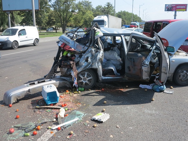 Мащины направлялись в сторону проспекта Победы. Водители, двигавшиеся впереди, притормозили и это, похоже, стало неожиданностью для водителя грузовика. Он на полном ходу врезался в "Ладу".
