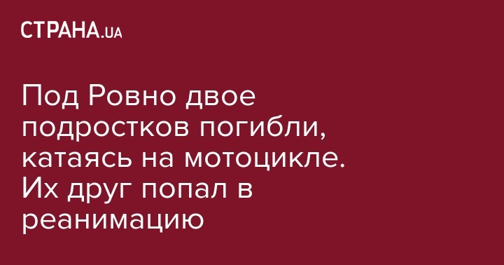 В воскресенье, 26 августа, в Рокитновском районе Ровенской области мотоциклист не справился с управлением, выехал с обочины в канаву и столкнулся с деревом. В результате ДТП погибли двое юношей и еще один получил тяжелые травмы. Об этом сообщает пресс-служба областной полиции.