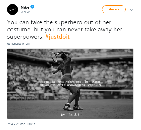 В компании  Nike ответили лаконичнее: "Можно забрать у супергероини костюм, но вы никогда не сможете лишить ее суперсил".