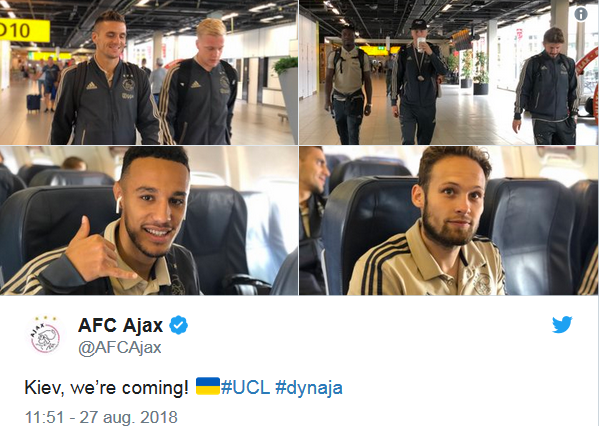 В понедельник, 27 августа, футболисты голландского Аякса вылетели в Киев, где 28 августа пройдет ответная игра плей-офф Лиги чемпионов с Динамо.