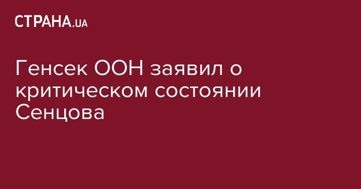 Генеральный секретарь ООН Антонио Гуттереш заявил, что украинский политзаключенный Олег Сенцов находится в критическом состоянии. Гуттереш обеспокоен состоянием здоровья украинца, у которого на 109 день наблюдаются дистрофия, анемия и гипоксия. Об этом заявил официальный представитель главы ООН Стефан Дюжаррик на телеканале "Прямой".