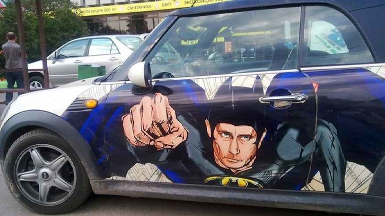 Российского президента автолюбители изображают в образе супергероя, фото: Gazeta.ru