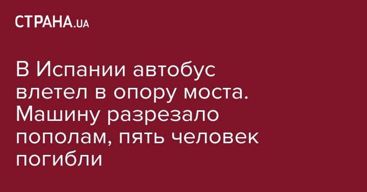 В Испании произошла жуткая автомобильная катастрофа. Здесь пассажирский автобус влетел в опору моста и, фактически, оказался разрезанным пополам. В катастрофе погибло по меньшей мере пять человек, еще 20 получили ранения, сообщает LVA в Twitter.