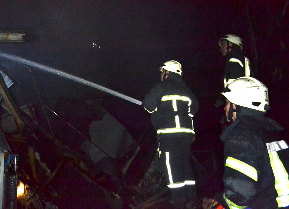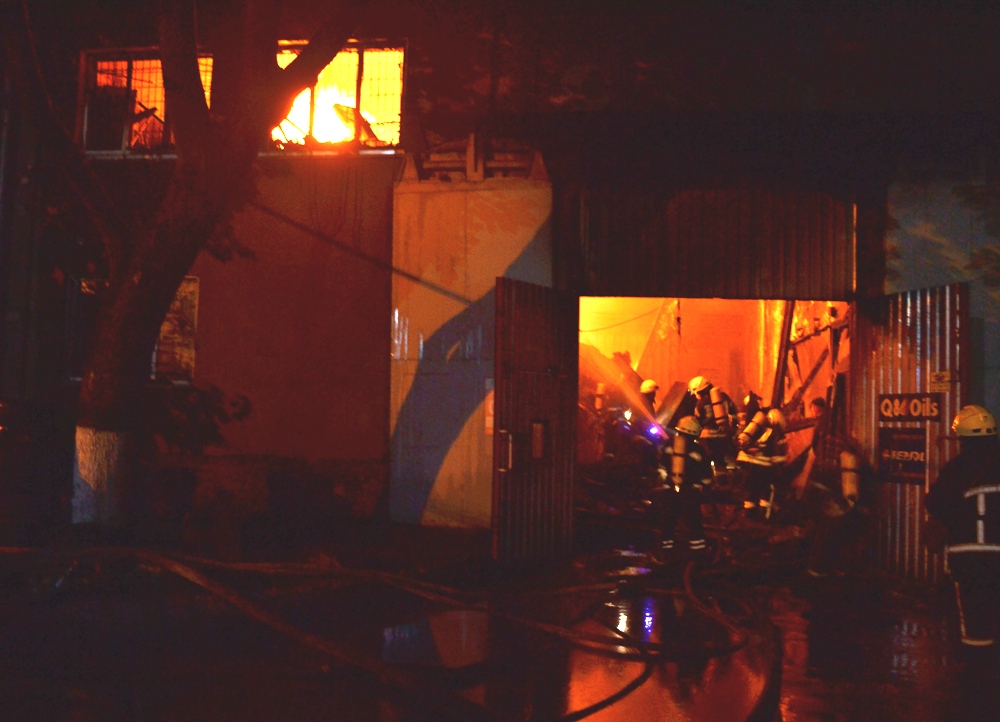 Сообщение о возгорании в складском помещении станции технического обслуживания поступило к спасателям 3 сентября в 20:57. Пожарные подразделения установили, что горят смазочные материалы и неизвестные вещества на складе на первом и втором этажах. При этом постоянно возникали взрывы неизвестного происхождения. В результате интенсивного горения в 21:19 произошло обрушение крыши и пожар распространился на площадь 150 кв. метров.