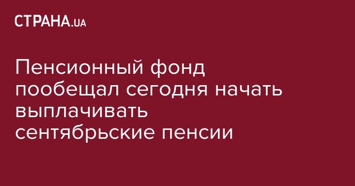 Пенсионный фонд Украины (ПФУ) 3 сентября начал финансирование сентябрьских пенсий. Выплату пенсий начнут с 4 сентября. Об этом сообщается на сайте ПФУ.