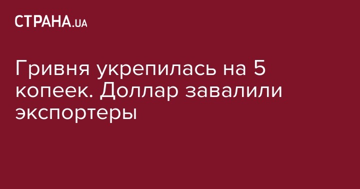 Гривня укрепилась на 5 копеек. Доллар завалили экспортеры