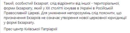 Пресс-центр Киевской Патриархии прокомментировал назначение Вселенским Патриархатом экзарха в Киев в рамках подготовки к предоставлению автокефалии.