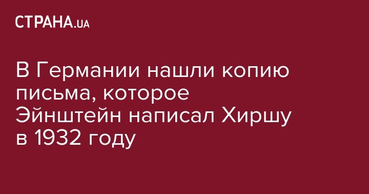 В Германии нашли копию письма, которое Эйнштейн написал Хиршу в 1932 году