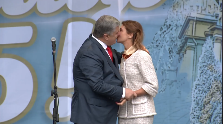 Во время пребывания в Виннице Петр Порошенко со сцены поздравил свою супругу Марину с 34-летием совместной жизни.
