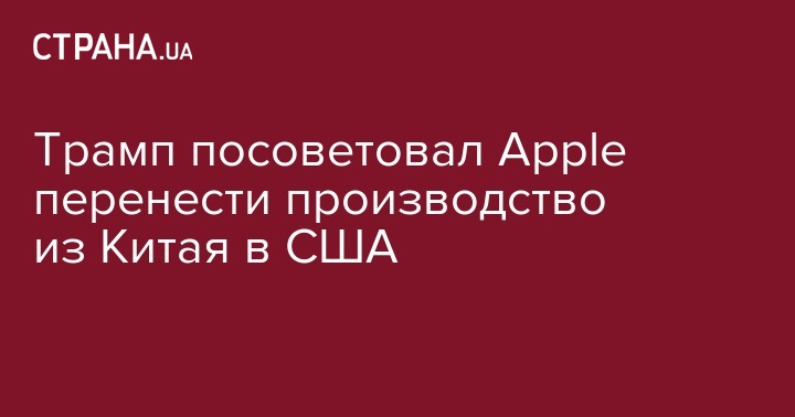 Президент США Дональд Трамп, который ввел новые импортные пошлины на товары из Китая, советует компании Apple перенести свое производство в США, чтобы избежать подорожания продукции. Об этом он написал на странице в Twitter.