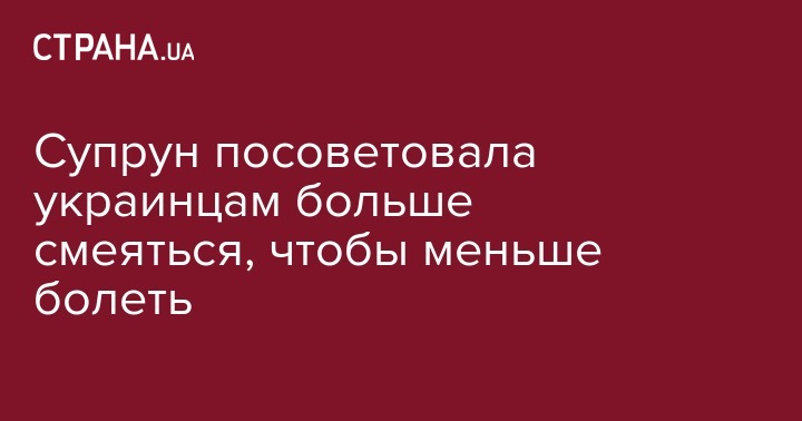 Глава Минздрава Ульяна Супрун, которая возглавила рейтинг ненавистных украинцам политиков, сообщила о пользе смеха для здоровья, который можно сравнить даже с пользой сбалансированной диеты и физической активности. Об этом она сообщила на своей странице в Facebook.
